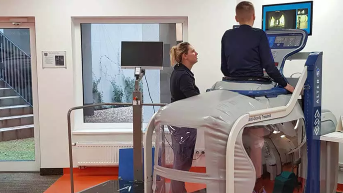 Das Antigravitations-Laufband ermöglicht ein Lauftraining mit einer Entlastung des Körpergewichts um bis zu 80%. Eine außergewöhnliche Präzision des Laufbandes erlaubt es, den Wertebereich, innerhalb dessen die Übungen schmerzfrei und therapeutisch wirksam sind, genau zu bestimmen. Die einzigartige Technologie minimiert die Belastungen und Auswirkungen des Trainings beim Gehen oder Laufen und ermöglicht eine schrittweise Rückkehr zur vollen Leistungsfähigkeit unter natürlichen Bedingungen.