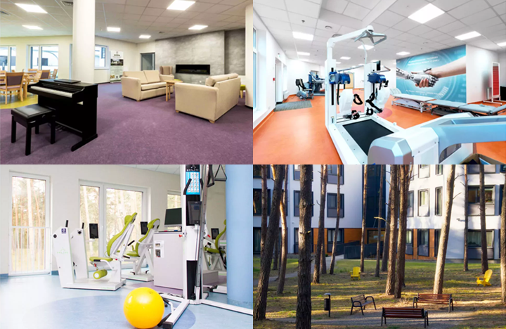 Die Teilnehmer des Programms nutzen modernste Trainingsgeräte, eine Kryosauna, eine Druckkammer, ein Antigravitations-Laufband und ein Gerät zur Unterdruckstimulation der unteren Extremitäten – eine äußerst wirksame Form der Vorbeugung gegen Blutgerinnsel und Krampfadern. Auch ein innovatives Gerät zur Therapie von Harninkontinenz und/oder sexuellen Funktionsstörungen steht zur Verfügung – die Methode verletzt nicht die Intimsphäre des Patienten.